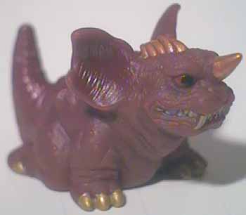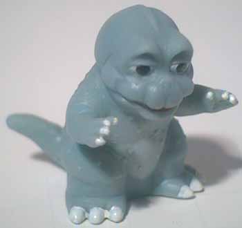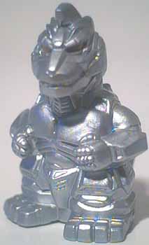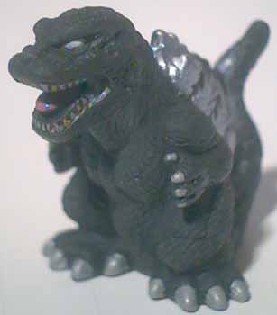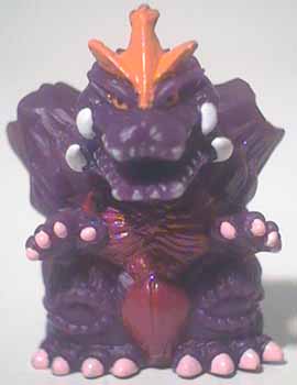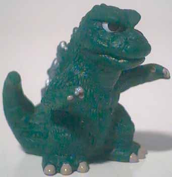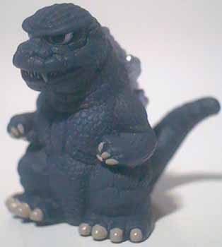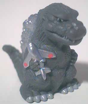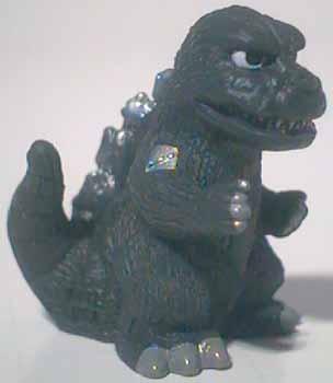 The Shoshingecki SD set retailed for ¥100 and consists of nineteen figures plus a lottery figure. There are twenty boxes in a case, and out of the twenty numbered boxes there are two number nineteen boxes. There is a chance to get a translucent Godzilla figure in one of the number nineteen boxes, otherwise each box has one figure, a sticker card, and a candy bag. There ten different sticker cards and nine of them contain two different stickers. Each figure is around one 2.5 cm tall and hollow with a hole on the bottom.